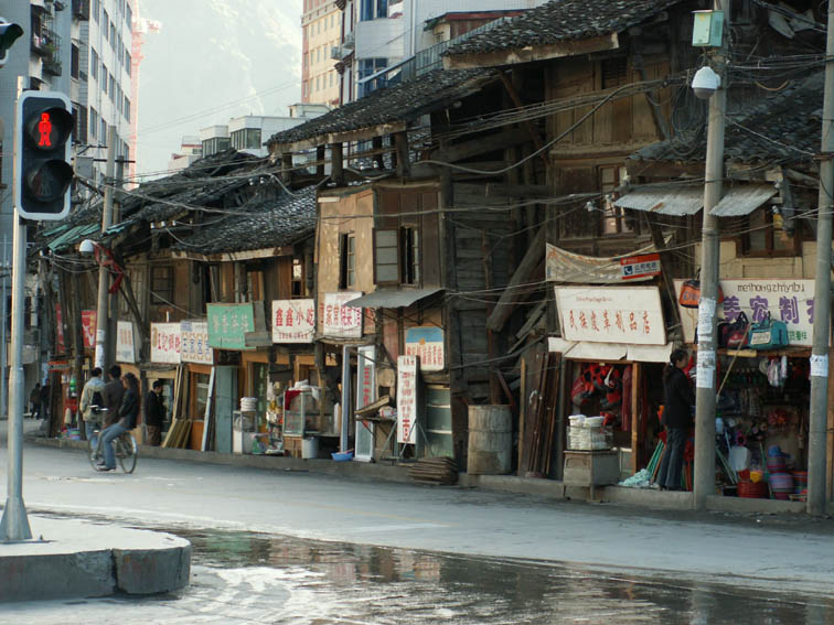 Übriggebliebene alte Häuser im Zentrum von Kangding (ex Tatsienlu)
