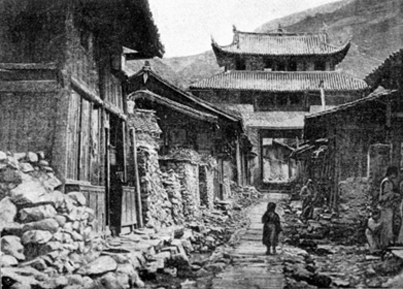 However, I did not even get around to feel disappointment for in Leech’s introduction there was something that immediately made me go on the alert. There were photos of Tatsienlu made in 1890. I learned they had not been taken by Leech himself but by another English explorer by the name of A.E. Pratt. Leech on his long collecting trip to East Asia had chosen to go directly to Corea and commissioned Pratt to make the difficult journey up the Yangzi River and as far as he could into Tibet. The farthest point Pratt had reached was, guess, Tatsienlu. Or rather it was a little Tibetan hamlet of some four wooden huts and a kun-quan (a sort of primitive hostel for traveling Chinese mandarins) ten miles west of Tatsienlu. It is on the old trade road from Sichuan to Lhasa called “Tea-Horse” because the main trade was brick tea going west and horses going east. The name of this place was Chetu (Zheduo in Hanyu Pinyin spelling). It never was on any map. However, there even happens to exist a picture of it from the 1880s, in the book about Count Béla Széchenyi’s expedition to Central Asia, section “Geographie,” by the Austrian geographer Gustav Ritter von Kreitner. So unexpectedly there was the place where Konstantin Godunov had been seen for the last time, a place I had thought to be fictitious. But why Thecla bieti?