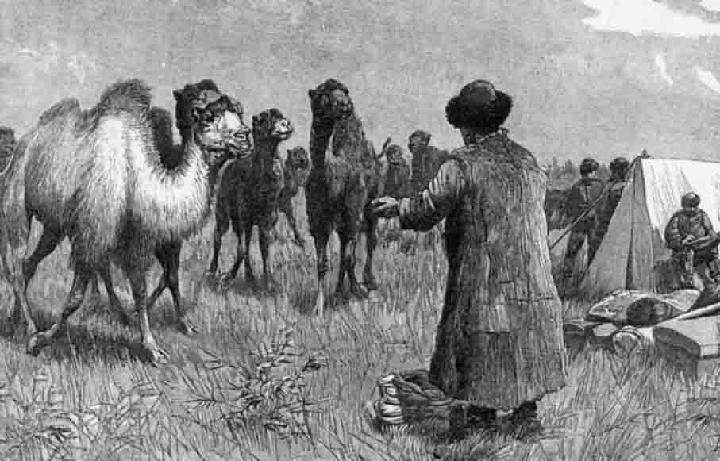 Im Tarim-Becken: „Imatch ruft die Kamele der Karawane herbei“ (Bonvalot)