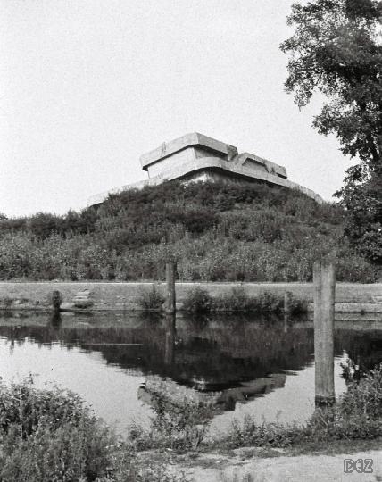 Der kleinere der beiden Zoobunker (Flaktürme) nach der Sprengung 1948, vom Tiergarten aus | ![]() |