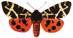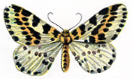 Arctia hebe LINNAEUS, 1758 [Noctuidae, Arctiinae], obsolete synonym of Arctia festiva HUFNAGEL, 1766. Sometimes it is ranged into a separate monotypic genus, Eucharia. Arctia festiva is a strikingly colored tiger moth (yellow, red, black) with a wingspan of 45-60 mm. On sandy terrain in Central and Southern Europe, European Russia, Central Asia, Southern Siberia, Mongolia and China. & Ac: Árctia hébe, Árctia féstiva • En: Hebe Tiger Moth • Ge: Englischer Bär • Fr: Écaille rose, Écaille hébé • Ru: Медведица геба *LtVé 51, 97