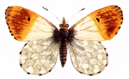 Anthocharis (ex Euchloe) cardamines Linnaeus, 1758 [Pieridae, Pierinae]: the European Orange-tip par excellence, a pierid with a wingspan of 35–45 mm. The females lack the orange forewing tips of the males and are marked black instead. It flies from late March to June on damp meadows as well as on alpine grassland and dry lowland scrub from W Europe and the Middle East across temperate Asia to Japan. *SpeakM 62; Lep1 31; Lep2 257, 268 & Ac: Anthócharis/Euchlóë cardámines • En: Orange-tip, Wood Lady • Fr: l'aurore • Ge: Aurorafalter • It: aurora • Ru: зорька (сердечниковая), петрушечница, аврора • Sp: musgosa