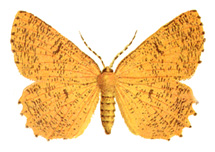 Angerona prunaria Linnaeus, 1758 [Geometridae, Ennominae]: a geometer moth with a wingspan of 35–45 mm in all of temperate Europe and Asia. It is a very variable species. Some of its male forms are downright orange, others show orange marks interspersed with brown. *SpeakM 129 & Ac: Angeróna prunária • En: Orange Moth, Orange Thorn • Fr: le phalène du prunier, (Autres ravages) Phalène Orange • Ge: Schlehenspanner • It: geòmetra della ginestra • Ru: пяденица сливовая • Sp: naranja