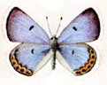 Aricia nicias Meigen, 1829, syn donzelii Boisduval, 1832 [Lycaenidae]: the Silvery Argus, a blue in the Pyrenees, the Alps, S Siberia and Mongolia. *Lep9 4
