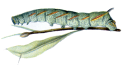 *Mimas tiliae Linnaeus, 1758 [Sphingidae, Sphinginae]: in The Aurelian, Pilgram on a Berlin roadside shrub picks up a "large turquoise-green caterpillar with a china-blue horn on the last ring". Taking the horn on the last (!) ring as a lead, Zsolt »Bálint has identified the caterpillar as that of Mimas tiliae. This is a rather common Palearctic hawk moth with a wingspan of 55–70 mm, flying in Europe, Turkey, Russia and W Siberia. The green caterpillar is indeed large, about 65 mm, and lives mainly on lime trees. It is most appropriate that Pilgram should find this caterpillar where he does, for the Lime Hawk is common in urban parks and gardens, and linden trees are lining many Berlin streets. *Stories:Aur 248 & Ac: Mímas tíliae • En: Lime Hawk • Fr: le sphinx du tilleul • Ge: Lindenschwärmer • Ru: бражник липовый • Sp: esfinge del tilo
