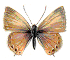 *Maculinea (ex Lycaena, Phengaris) arion Linnaeus, 1758 [Lycaenidae, Polyommatinae]: This probably is the blue of The Gift said to have "concluded a barbaric pact with [the inhabitants of an ant-hill]". It is a Palearctic lycaenid whose range extends from the N of the Iberian Peninsula through most of C Europe to Fennoscandia and E across temperate Asia to Mongolia. Its caterpillar feeds first on thyme and then lets itself be carried into an ant-hill where it feeds on ant larvae, secreting a sweet juice to pacify the ants. It is a symbiotic practice widespread among blues, but particularly within the genus Maculinea van Eecke 1915, having earned it the German surname 'Ameisenbläulinge' (ant blues). (For ant blues, see under »blues.) *Gift 110; NabBut 606 (BE); Lep2 270 & Ac: Maculínea/Lycáena aríon • En: Large Blue • Fr: l'arion, l'azuré du serpolet • Ge: Schwarzfleckenbläuling, Arionbläuling • Ru: голчбянка Арион • Sp: hormiguera de lunares
