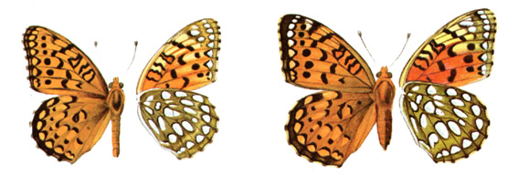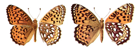 Speyeria mormonia Boisduval, 1869 [Nymphalidae]: the Mormon Fritillary (wingspan 41–51 mm), on alpine and subalpine meadows from S Alaska southwest to S Dakota and south to Utah, Arizona and New Mexico. *NabBut 406 (L)