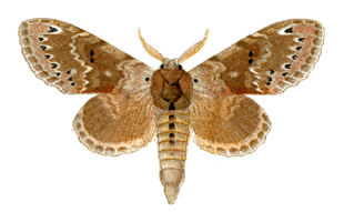 Saturniidae Walker, 1855 (ex Attacidae): a family of night-flying moths, most of them large and very large with a stout body and strikingly beautiful wing patterns; often they have an eyespot on each one of their four wings. There are around 1,200 species, most of them in tropical SE Asia and Australia. & Ac: Saturníidae • En: saturnids, emperor moths, giant silkmoths • Fr: saturniidés, paons de nuit • Ge: Saturniiden, Nachtpfauenaugen, Augenspinner • It: saturnidi • Ru: павлиноглазки • Sp: satúrnidos In Nabokov's long nostalgic poem on the joys of luring moths written in 1922, the first one he takes is "a puffy silkmoth, / speckled, like a fallen leaf". Discounting the Ailanthus Silkmoth (Samia cynthia Drury, 1773) that was introduced to Europe and America only later on, there are very few Silkmoths (that is, Saturniids) in Europe. So there is little choice. It must be either one of the three European Saturnia species (»Saturnia pavonia, »Saturnia pyri or Saturnia spini Denis & Schiffermüller, 1775) or else »Aglia tau. Of these, pyri and spini occur farther to the south, leaving the Emperor Moth (Saturnia pavonia) and the Tau Emperor (Aglia tau). Both are frequent in the region of St. Petersburg. The color of the Tau Emperor is tan, making it more like a withered leaf than the Emperor Moth where only the hindwings of the males are tanned. In addition, some Tau Emperors are heavily dusted ("speckled") with dark brown or black scales. This makes the Tau Emperor a more likely candidate. *NabBut 107 (P)